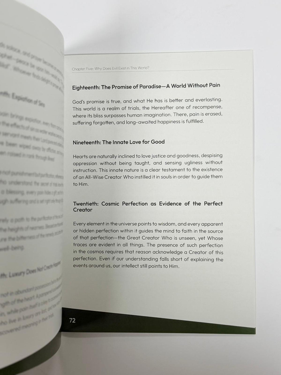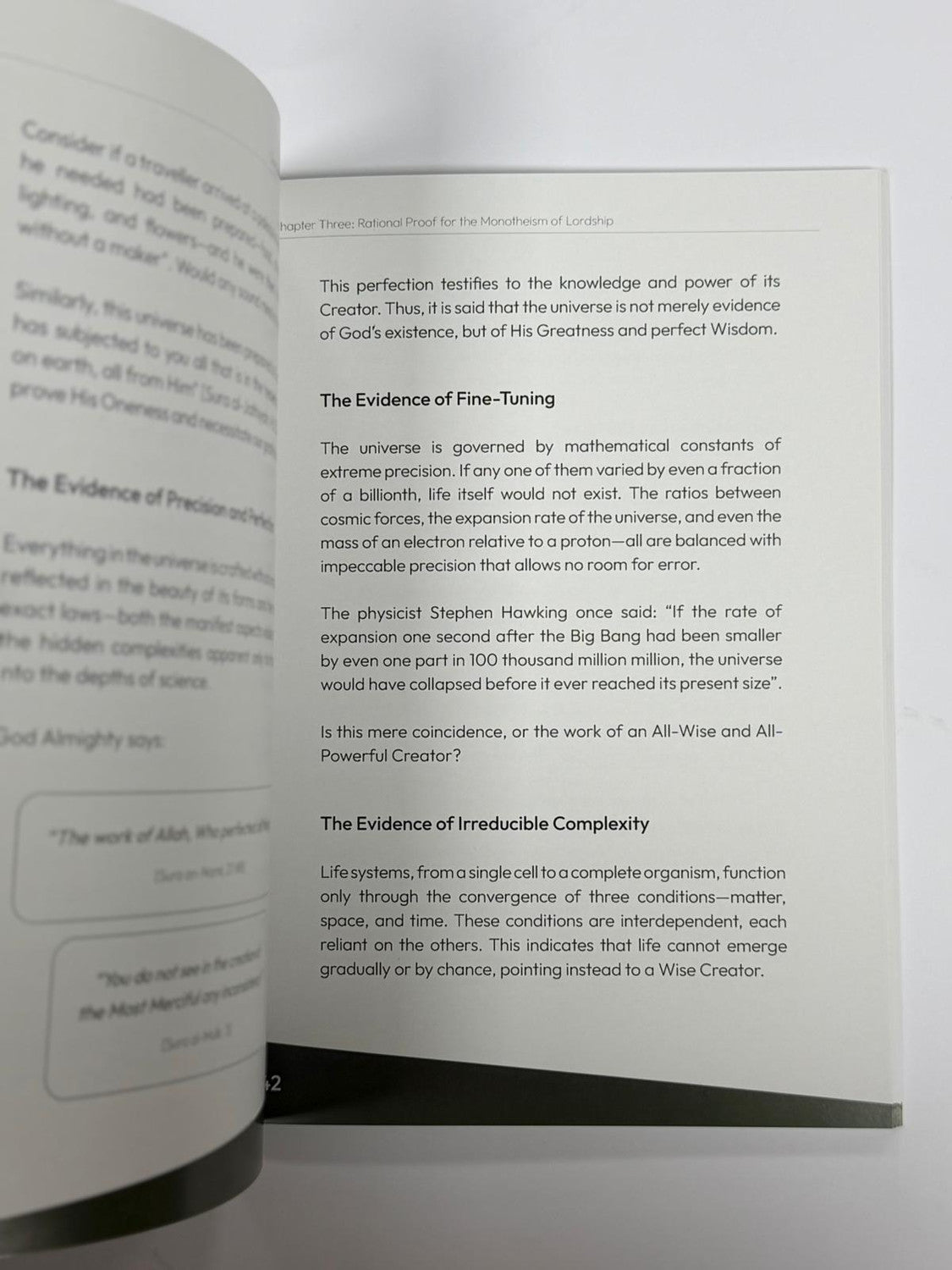 Rather than asking the reader to accept faith blindly, this book invites honest questioning. It examines prophethood as evidence for monotheism, explores the innate human disposition towards belief in God, presents rational proofs for divine lordship, and confronts some of the most common intellectual and emotional barriers to faith including atheism and the problem of evil.