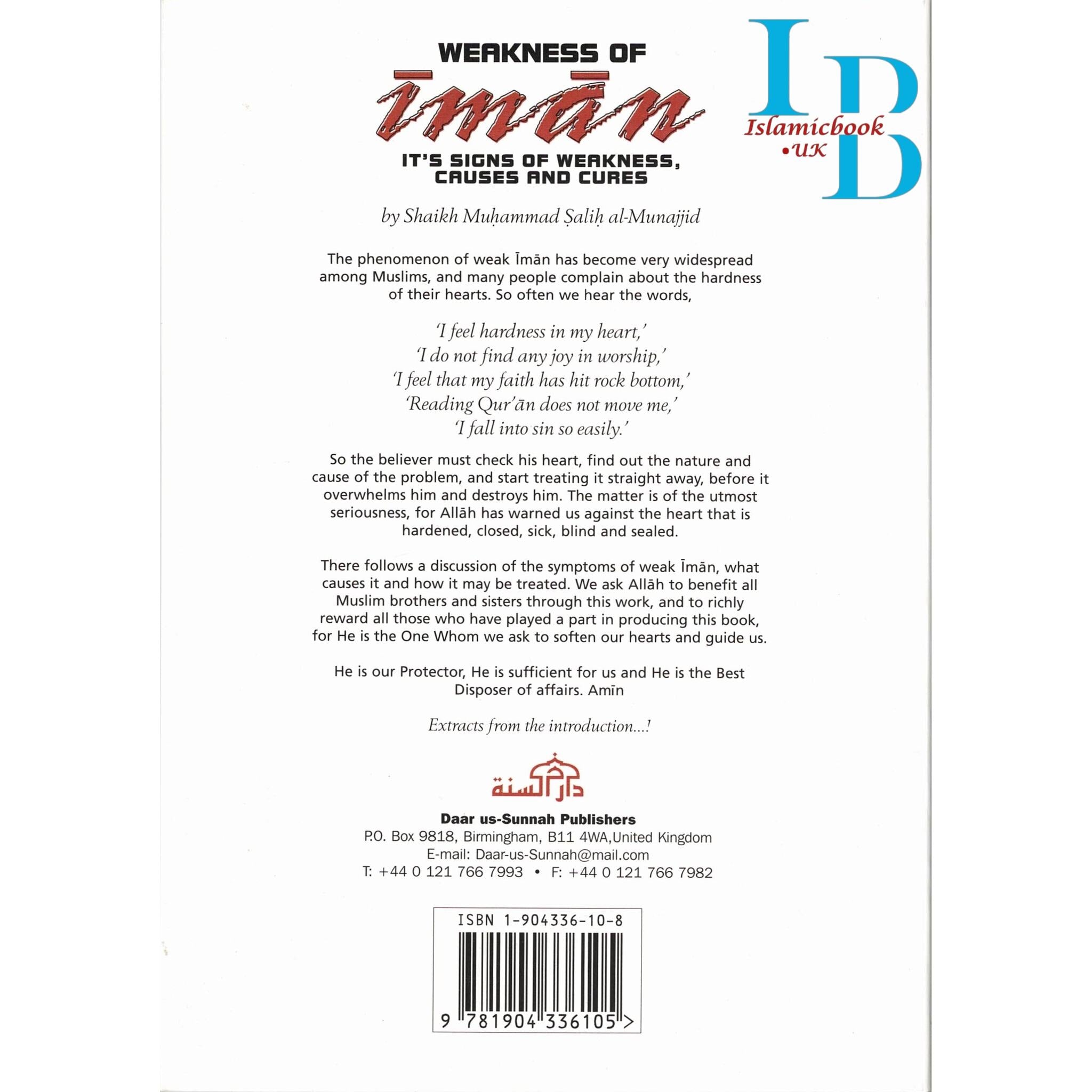 In "Weakness of Iman: Its Signs, Causes, and Cures," Shaikh Muhammad Salih al-Munajjid delves deeply into a delicate and crucial part of a Muslim's faith. This thought-provoking book provides a guide for persons dealing with the symptoms of waning Iman (faith), providing both a diagnosis of the underlying causes and practical solutions to enhance one's connection with Allah.