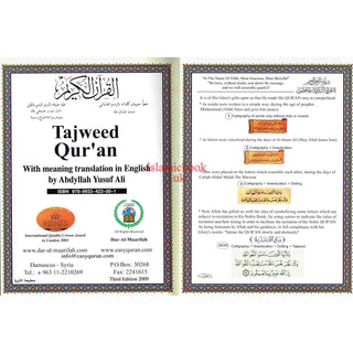 Tajweed Quran with meaning Translation In English y Abdullah Yusuf Ali 17x24 CM