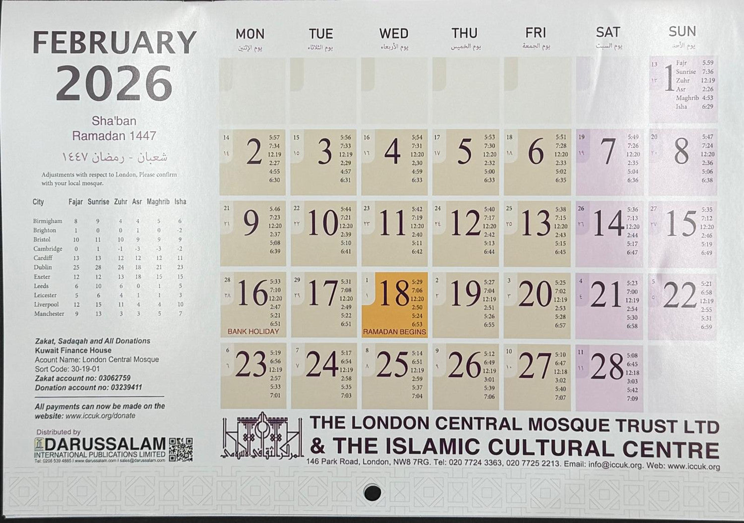 This highly anticipated calendar brings forward more than just the combination of the Gregorian and Hijri (Islamic) calendars. It also brings key Islamic events in the year, prayer times, and 12 inspirational quotes from the Holy Qur'an alongside beautiful natural images on every page to remind you of the greatness of the creator.